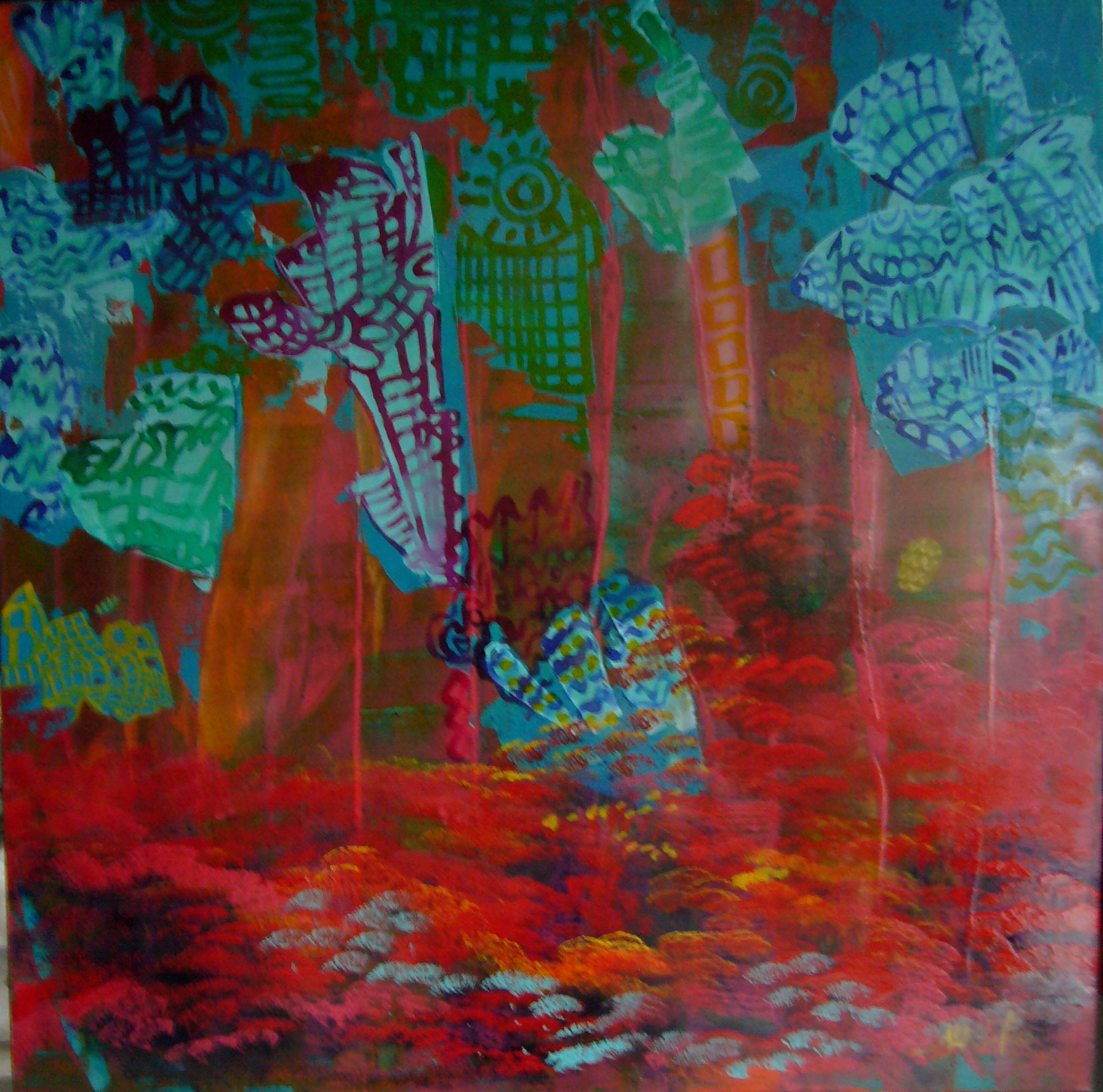 05. DE SA COURS MAGIQUE 100X100 2010 technique mixte acrylique